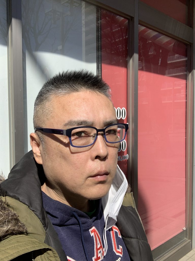 航空公園の満州餃子で麻婆ラーメンを食べたあと飛行船へ歩いていると、後ろからチャリで接近する人が
